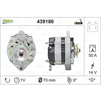 VALEO 439180 Alternator Charge current: 60 Amp Grooves: 1 grooves Pulley diameter: 63 mm Voltage: 14 V Rotation direction: CLOCKWISE