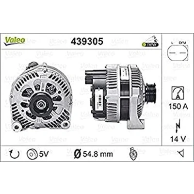 VALEO 439305 Alternator Charge current: 150 Amp Grooves: 5 grooves Pulley diameter: 54,8 mm Voltage: 14 V Rotation direction: CLOCKWISE