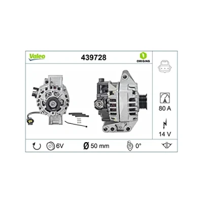 VALEO 439728 Alternator Charge current: 80 Amp Grooves: 6 grooves Pulley diameter: 50 mm Voltage: 14 V Rotation direction: CLOCKWISE