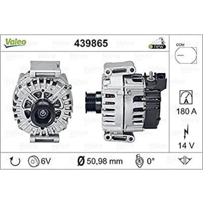 VALEO 439865 Alternator Charge current: 180 Amp Grooves: 6 grooves Pulley diameter: 51 mm Voltage: 14 V Rotation direction: CLOCKWISE