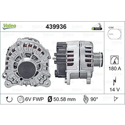 VALEO 439936 Alternator Charge current: 180 Amp Grooves: 6 grooves Pulley diameter: 51 mm Voltage: 14 V Rotation direction: CLOCKWISE