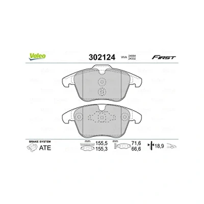 SPECIFICATIONS: Fitting Position: Front axle, Brake system: TEVES, WVA number: 24084/24332; DIMENSIONS (in mm): Width: 155, Height: 71,6/66,7, Thickness: 18/18,9 PREMIUM QUALITY: Our brake pads have the same quality standards as the original parts in order to ensure durability and performance THE SAFETY CHOICE: The perfect balance between efficiency, durability and price to offer optimal braking experience even in difficult conditions HEALTH AND SAFETY: Our brake pads are asbestos- and copper-free; they are also certified ECE-R90 in order to comply with European regulations VALEO QUALITY: Since 1923, Valeo accumulated a long experience as a Braking specialist to offer you confort, safety and sustainability