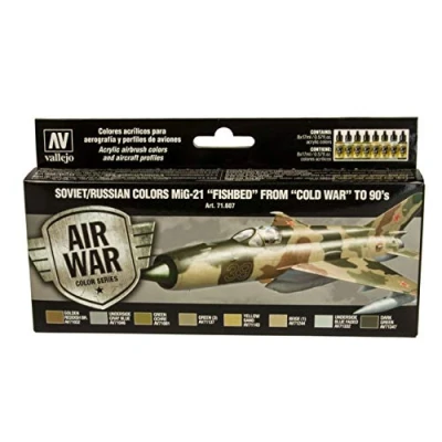 Vallejo VAL71607 AV Model Air Set Soviet MiG 21 Fishbed 50 90's Paints for use with an Airbrush, Various, 17ml