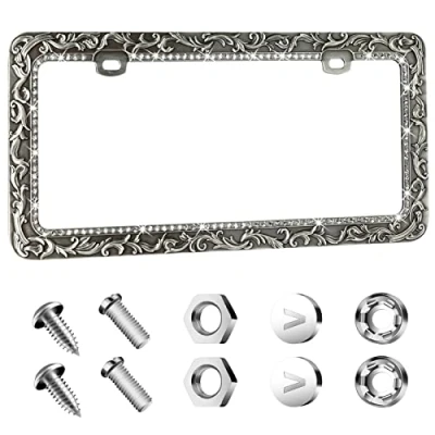4-HOLE LICENSE PLATE FRAME: For Your Cars, Trucks and All Kinds of Trailers Requiring Four (4) Fasteners to Attach Number Plate and Frame Protector. Some Automobiles Only Have 2 Holes. Please be Sure to Check Your Vehicle Before Ordering. PREMIUM QUALITY: The License Plate Frame Is Made from High-Quality Environmental Zinc Alloy, Die Casting, Forming One, High Temperature Resistant, 100 Degrees is not Deformed, With a Weather-resistant, Does not Rust and Corrosion, and No Toner, No Cracking, Increase The Intensity to Make License Plate Frame is not Twisted, No Distortion. Withstand all extreme weather. NOT COVER STATE NAME: The Durable Shine Chrome Plated License Plate Frame Is Measuring 12.6”x 6.3”, Fits Any U.S. Standard License Plate. New Design Different from Others, Valor License Plate Frame,Ultra Narrow Border Is Specially Designed Not Cover Important Parts. Will not block state tags in all four corners. EASY TO INSTALL: It Contains 1 Pack License Plate Frames, Anti-Theft Screws Kit, Which Ensure Frame Safety Also Adaptable More Models. SATISFACTION SERVICE: We Are Committed to Making Sure You Satisfied of Your Purchase, So If for Any Reason You Are Not Satisfied, Please Contact Us And We Will Help You Solve The Problems.Thank You for Your Support! And This Glitter License Plate Frames Is The Best Gift Choice for Your Friends or Family and They Will Be Surely Amazed by Such An Impressive License Plate Frames.