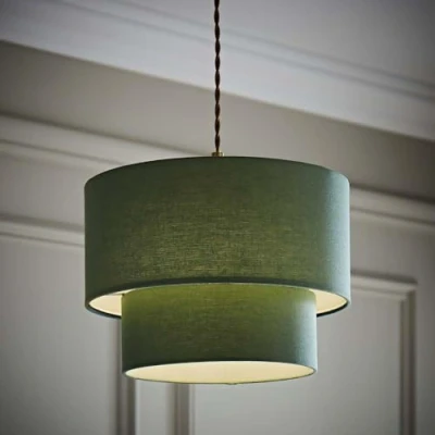 ValueLights Jodie Two Tier Sage Linen Ceiling Drum Lamp Shade and Bulb Lights, Home Décor & Improvement Essential