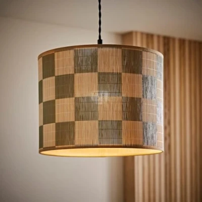 ValueLights Lori Green Checkerboard Bamboo Drum Ceiling Lamp Shade and Bulb Lights, Home Décor & Improvement Essential