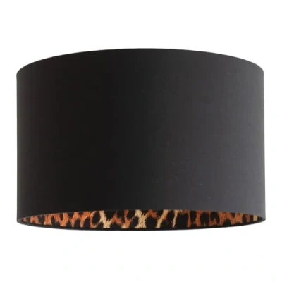 LAMP SHADE - A large black drum lamp shade with a bold leopard print fabric on the inside, bringing fierce style to your lighting SLEEK - The striking contrast between the sleek black exterior and wild animal print adds a touch of drama and exotic flair MEASUREMENTS - Height (A) 25cm x Width (B) 41cm x Depth (C) 41cm FIND YOUR PERFECT FIT -Perfect for living rooms, bedrooms, or any space in need of a statement piece that combines chic elegance with wild style ABOUT US - At ValueLights our commitment is as clear today as it was the day we opened our doors back in 2009, to become the go-to people for lighting - with an unbeatable range of lamps, lights, shades or bulbs.
