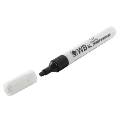 Whiteboard marker for a variety of uses. Chunky barrel for comfort grip. Strong plastic cap protects tip from damage. Chisel tip for variable line width. Long-lasting reservoir. Ink colour: Black. Pack of 10 pens.