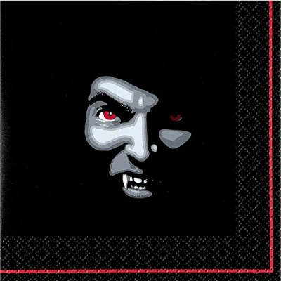 Package of 20 Vampire Halloween Party Napkins Vampire Halloween Napkins measure 6.5" x 6.5" Frighteningly fun for any Halloween party or vampire ball Pass out with a party meal for ghoulish guests to use to wipe up spills and crumbs Coordinate with other Vampire Halloween party supplies and party tableware from Unique, Manufacturer: Unique