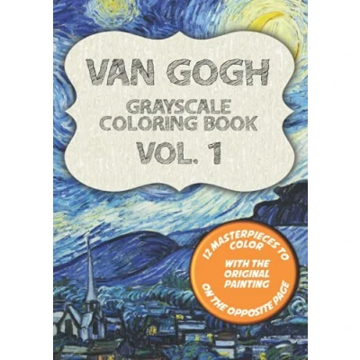 Van Gogh Grayscale Coloring Book Vol. 1: 12 Vincent's Masterpieces to Color With the Original Painting on opposite page. Starry Night, Vase of Irises and 10 other Famous Paintings.
