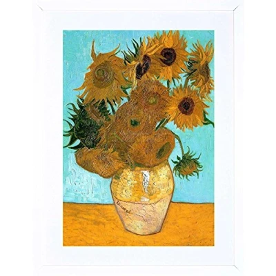 VAN GOGH STILL LIFE VASE TWELVE SUNFLOWERS OLD FRAMED PRINT PICTURE 28 F12X1628