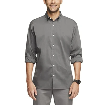 Van Heusen Men's Classic Fit Stain Shield Never Tuck Stretch Button Down Shirt, Iron Gate Solid, Medium