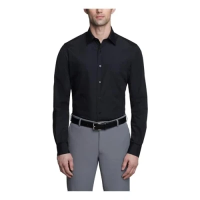 Van Heusen Men's Dress Shirt Fitted Poplin Solid, Black, 18" Neck 34" 35" Sleeve