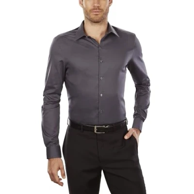 Flex Collar: Stretches up to half an inch for expandable comfort. Stretch Fabric: Stretches and moves with you for extra comfort. Wrinkle Free: Developed for less wrinkles and easy care. Slim Fit: Modern fit with a tapered body and slimmer sleeves for a sleek look that flatters most body shapes Point Collar: Classic collar thought to lengthen the face & allows for tie knot variety; can be worn with or without neckwear. Adjustable Cuff: Two button positions allow for a more customized, improved fit. No Pocket: Sleek, streamlined design offers a cleaner appearance.