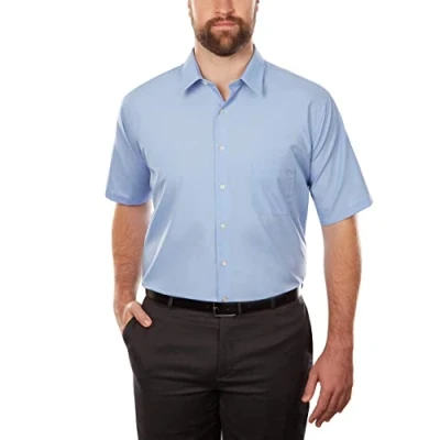 Van Heusen Men's Fit Short Sleeve Dress Shirts Poplin Solid (Big and Tall), Cameo Blue, 22" Neck