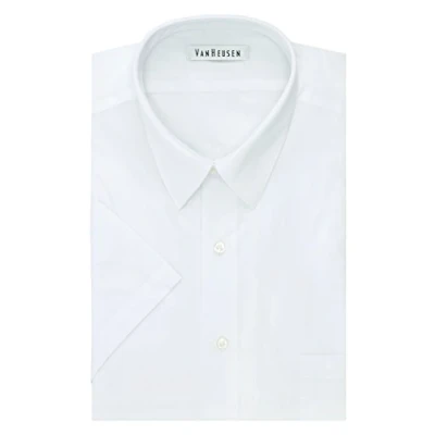 Van Heusen Men's Fit Short Sleeve Dress Shirts Poplin Solid (Big and Tall), White, 20" Neck
