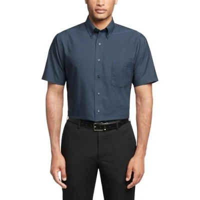 Van Heusen Men's Short Sleeve Oxford Dress Shirt, Navy, 20.5" 21" Neck
