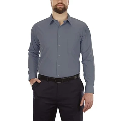 Van Heusen Men's Tall Dress Shirt Big Fit Poplin, Grey, 18" Neck 34" 35" Sleeve