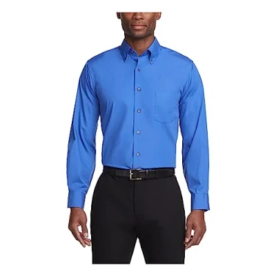 Van Heusen Men's Dress Shirts Regular Fit Silky Poplin Solid, Royal Blue, 17.5" 18" Neck 34" 35" Sleeve