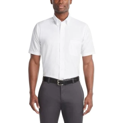 Van Heusen Mens Dress Shirts Short Sleeve Oxford Solid, White, 16" Neck