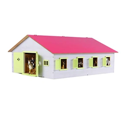 Van Manen Kids’ Globe Farming Horse Ranch, with 7 Stalls, Wooden Farm, Folding Roof, Pink, 610189