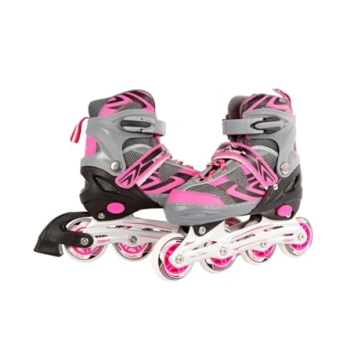 The inline skates are adjustable in size and adapt so well to your child's feet. The comfortable roller skates provide a lot of riding fun when skating. The inline skates come in the trendy colors pink and gray. Materials: aluminum, plastic Contents: 1 pair of Street Rider inline skates, grey-pink, Manufacturer: Kids Globe