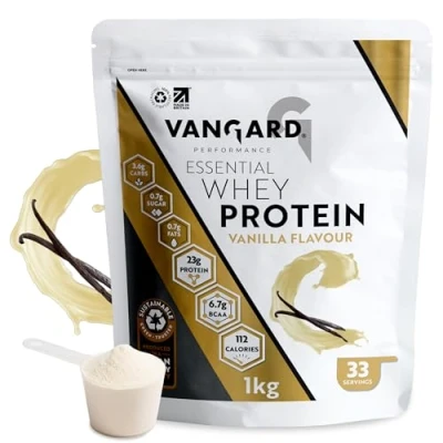 Vangard Essential Whey Protein Powder Vanilla Flavour (1kg 32 Servings), Premium Quality Soluble Shake 23g of Per Serving