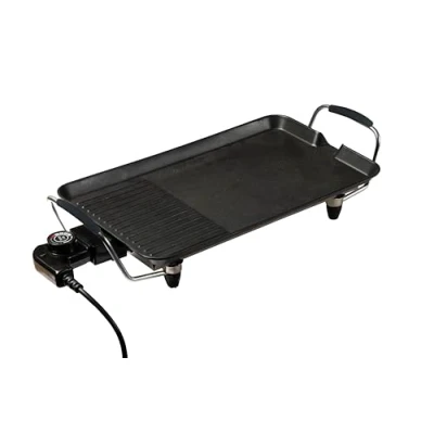 25m cable with UK plug - Extra long cable provides flexibility for cooking Power: 1500 Watts - Allows for efficient cooking Flat or ribbed non-stick grill plate option - Healthy cooking options and easy to clean Adjustable 5 setting thermostat with light indicator - Control the temperature whilst cooking (80-240oC)