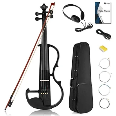 ✔️ [Satisfying Practice & Thrilling Perform] Vangoa silent electric violin perfectly fits beginners to bring quiet moments for families, during your learning time. With headphones, you can be immersed in happy melodies, without bothering others, and progress rapidly. It's amp connectable to play louder, showing your musical talent on stage/party ✔️ [Quality Durable Material] Premium Solid maple wood body in black metallic varnish produces a crisper, more resonant, and brighter sound. Selected ebony fretboard ensures smooth playing while solid maple head, pegs, and chin rest are durable for a long period of practice ✔️ [Pleasing Sound] Carbon fiber tailpiece with 4 detachable fine tuners can tune precisely. Robust durable steel strings add richness and power to the sound. Brazilwood bow with unbleached natural horsehair pulls out the best-balanced sound ✔️ [More Size Options for Everyone] Picking the most appropriate size is essential for a comfortable start. Offer 3 sizes for students, kids, teens, adults, beginners, and advanced players. And it is lightweight, less likely to make players' arms tired and sore to ensure long-time practice ✔️ [Useful Beginner Kit] Includes a hard case, extra strings, rosin, and headphone. You can get all the things you need in one purchase, it is cost-effective and time-saving. We provide a 1-year warranty, aiming to provide customers with high-quality products and sincere service. If you have any problems, just feel free to contact us. We will definitely give you a satisfactory solution