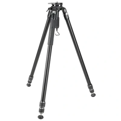 3-section 30mm diameter aluminium legs that extend to 1.7 metres without the need for a central column, with a 25kg load capacity. Perfect for videographers, photographers, heavy long lenses or spotting scopes Removable levelling base that can rotate 360° or move ±15° vertically, with a smooth VEO PV-18 Arca compatible video head. Includes a lightweight flat platform that can be used in place of the levelling base and attach the tripod head of your choice to the reversible 1/4” to 3/8” thread Weighs just 2440g with levelling base fitted, or 2110g with flat platform, and three easy-set leg angles (23°, 50° and 80°) allowing low angle or macro shots Noise-free and easy clean twist lock leg adjustments, and retractable rubber or spiked feet, with a luxury padded tripod bag