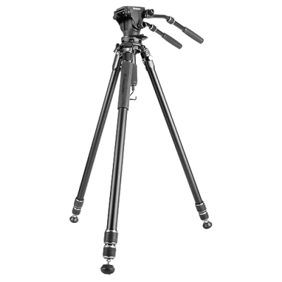 The Alta Pro 3VRL 303AV20 aluminum tripod includes a removable semi-sphere leveling base and comes in kit with the PV-20 2-way video ball joint for shooting stable videos, and even use with telephoto lenses or terrestrial telescopes. Removable 75mm diameter leveling base and PV-20 fluid video ball head. Maximum load 6 kg and 30 mm legs with three opening angles. Working height: from 28 cm to 180 cm. QS-67 hot shoe, retractable steel spikes, padded carry bag and extra flat base to convert it into a photo tripod.