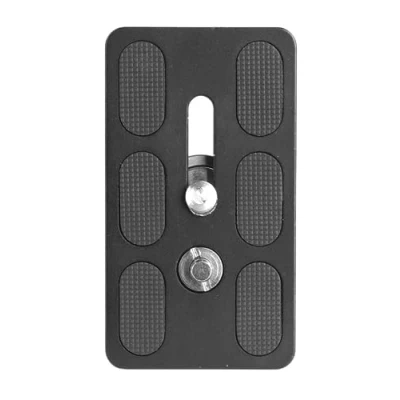 Arca compatible quick release plate 7cm long top plate is ideal for longer lenses/spotting scopes Adjustable 1/4" thread that allows the camera to be moved forwards/back for perfect balance on your tripod Non-twist spring pin to hold your spotting scope or long lens straight and ensure a solid fit Attached to the base of the camera by hand using the D-ring, or using an Allen key/coin/screwdriver