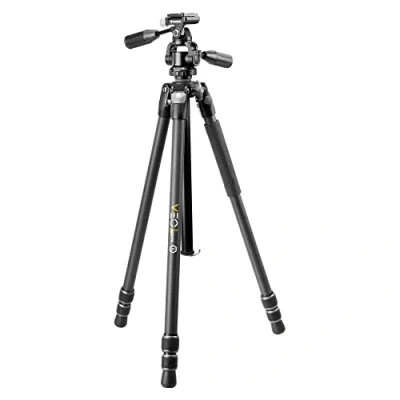 Traditional full sized 3-section carbon fibre tripod with 26mm diameter legs Weighs 2050g with a 10kg load capacity Extends to 179cm (146cm with central column down) and folds to 74cm Silent and easy clean twist lock leg adjustments Tripod leg converts to a monopod in 3 easy steps Two 3/8” threads on central column mount with non-slip bayonet fittings for attaching tripod support arms Low-angle adapter and 3 easy-set leg angles for macro/low-angle photography, or simply reverse the centre column VEO PH-38S 3-way pan head with rotating top handle allowing left handed and L Bracket use Removable rubber feet that can be replaced with spiked feet for outdoor use