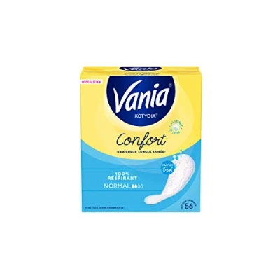 COMFORT AND FRESH - Vania Comfort lingerie liners offer optimal comfort and a long-lasting freshness feeling with an absorbent core made of plant fibres and ultra-absorbent micro beads. BREATHABLE PROTECTION: The Vania Comfort Sanitary Pads feature 100% breathable layers and a soft veil with dermatologically tested cotton extract for unparalleled softness. PERFECT FIT & OPTIMAL FIT - Designed for a perfect fit and optimal fit, these panty liners allow you to move freely throughout the day. LIGHTWEIGHT HIGH PERFORMANCE - Vania panty liners are lightly scented according to IFRA standards, with a high skin tolerance and free from elemental chlorine bleached fibers. Practical sizes: Vania Comfort Normal Fresh lingerie-liners are available in packs of 28 or 56 units, for discreet and comfortable everyday protection.