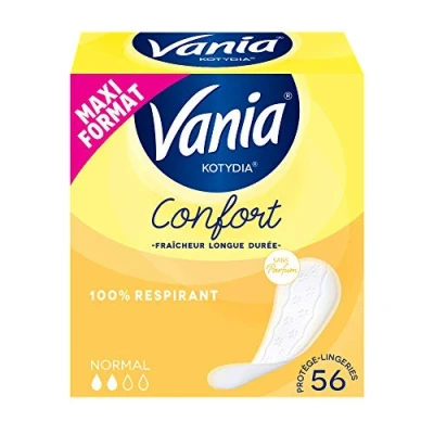 COMFORT AND FRESH - Vania Comfort lingerie liners offer optimal comfort and a long-lasting freshness feeling with an absorbent core made of plant fibres and ultra-absorbent micro beads. BREATHABLE PROTECTION: The Vania Comfort Sanitary Pads feature 100% breathable layers and a soft veil with dermatologically tested cotton extract for unparalleled softness. PERFECT FIT & OPTIMAL FIT - Designed for a perfect fit and optimal fit, these panty liners allow you to move freely throughout the day. Fragrance free: All components have been selected for their high level of skin tolerance and the fibres are unbleached with elemental chlorine. Practical sizes: Vania Comfort Normal Fragrance Free lingeries are available in packs of 28 or 56 units, for discreet and comfortable protection on a daily basis.