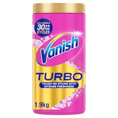 Vanish Turbo Stain Remover Powder, 30min Removal & Tough on Odours, 1.9KG