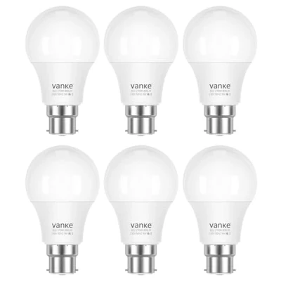 Vanke Bayonet Light Bulb, 9w (60w Equivalent), 2700K Warm White B22 LED Bulbs, 806 Lumen, Non Dimmable, Pack of 6