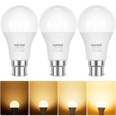 Vanke dimmable Bayonet Light Bulb, 8W (Equivalent to 60W), B22 LED Warm White 2700K, 806 Lumen BC A60 GLS Energy Saving Lightbulb, Pack of 3