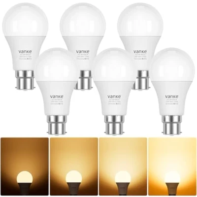 Vanke Dimmable Bayonet Light Bulb, 8W (Equivalent to 60W), B22 LED Warm White 2700K, 806 Lumen BC A60 GLS Energy Saving Lightbulb, Pack of 6