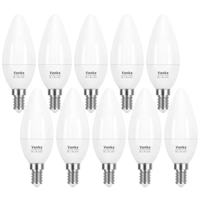 【Easy to install and use】These standard e14 screw bulbs are suitable for various fixtures, including chandeliers, ceiling fans, pendants, and table lamps. These are Non-Dimmable bulbs that do not work with a dimmer. 【Wide Applicability】The e14 LED light bulb is versatile, being suitable not only for indoor environments such as living rooms, dining rooms, cafes, and hotels, but also for outdoor use when paired with waterproof fixtures, despite the bulb itself not being waterproof. 【Enjoy long-lasting lighting】These light bulbs have a lifespan of up to 25,000 hours and are durable enough to provide reliable lighting for years. 【Create a comfortable atmosphere】2700K Yellow Light creates a relaxed and inviting atmosphere perfect for relaxation or entertainment. 【Protect your eyes】No flicker, and CRI more significant than 80 make your eyes more comfortable. Choose high-quality bulbs and drive components to enjoy a better lighting experience., Manufacturer: Vanke