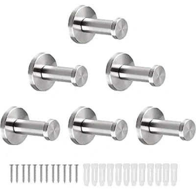 Vanloory Bathroom Towel Hooks, 6 Pack Round Coat Sturdy Wall Mounted Robe Hook, SUS 304 Stainless Steel Heavy Duty Clothes Hanger, Hooks for Bedroom Kitchen (Brushed)