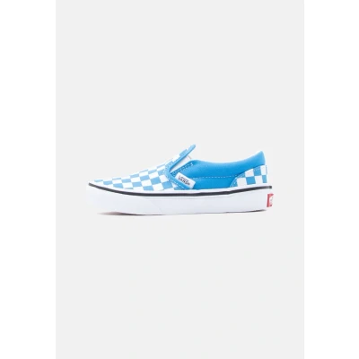 Vans Classic Slipon Unisex Skate shoes bright azure Sale at Zalando UK | Upper material: textile/Lining: imitation leather/ textile/Sole: synthetics/Insole: textile | Sale order at Zalando UK! Size: 10. Color: Bright azure. Pattern: checked. Age group: Kids.