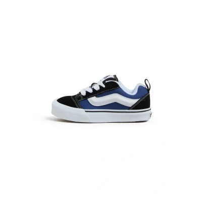 Knu Skool Youth Unisex Sneaker Color & Material Composition: Allblack colorway with tonal stitching and signature sidestripe Premium suede and leather upper construction with canvas accents Fit & Comfort features: Regular fit with padded collar for enhanced comfort Vulcanized construction for flexible durability Classic lowtop silhouette with reinforced toecap Durable rubber waffle outsole for superior grip Cushioned footbed for allday comfort The Knu Skool delivers classic Vans style with upgraded comfort and durability for young skaters and styleseekers alike. Built with premium materials and featuring our signature vulcanized construction, this sleek allblack sneaker combines timeless design with modern performance features that can handle whatever the day brings. Sale | Upper material: leather/Lining: leather/Sole: abrasionproof rubber/Insole: textile | Sale order at Zalando UK! Size: 1. Color: Navy. Age group: Kids.
