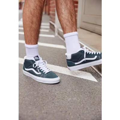 Vans MID Skool 37 Unisex Hightop trainers darkest spruce/true white Sale at Zalando UK | Upper material: leather and textile/Lining: imitation leather/ textile/Sole: synthetics/Insole: textile | Sale order at Zalando UK! Size: 2.5. Color: Darkest spruce/true white. Pattern: plain.