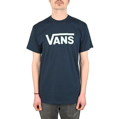 * The Vans Classic tee is a typical short-sleeved t-shirt, with branding graphic print on the centre of the chest * Navy cotton t-shirt structure with a mint print * Elasticated and ribbed neckline * Branded woven clamp label on the left cuff * 100% Organic Cotton * The fit is regular and fits well through the body * Model is 5'10" and of a slim build, wearing a size Medium