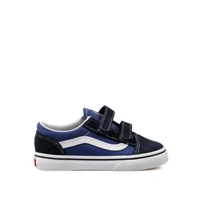 Old Skool Toddler Sneaker Color & Material Composition: Navy blue suede and canvas with white leather Sidestripe Durable suede and canvas upper with leather accents Contrast white stitching details Fit & Comfort features: Easyon double hookandloop straps for secure fit Vulcanized construction for flexibility Padded collar for enhanced comfort Reinforced toe cap for durability Signature waffle outsole for grip The mini version of our iconic Old Skool keeps the classic style alive for the newest generation of Vans fans. Built with the same attention to detail as the original, these toddler kicks feature a comfortable padded collar and easyclose straps that make getting ready for adventure a breeze. The vulcanized construction ensures durability and flexibility for those first steps and beyond. Sale | Upper material: leather and textile/Lining: imitation leather/ textile/Sole: synthetics/Insole: textile | Sale order at Zalando UK! Size: 7. Color: Navy. Age group: Kids.