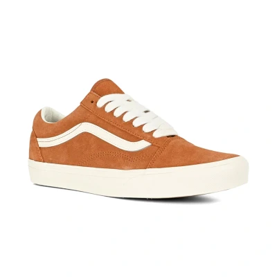 * The Vans Old Skool is an iconic silhouette, going all the way back to almost the very beginning of Vans' inception * Dark orange suede construction with tonal canvas underlays, black-and-white details and a white and gum sole unit * Minimal padding for the authentic look * Classic Vans waffle tread pattern * Custom-branded Vans details on the rear of the shoe * Fit: True to size, we recommend taking your usual size