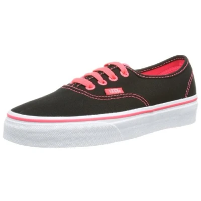 Vans Unisex Authentic Low Top Trainers, Black Pop Neon Red, 3.5 UK