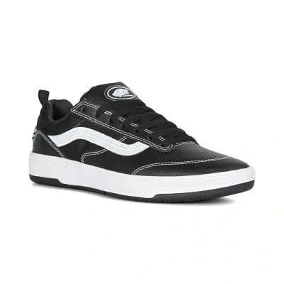 * The Vans Zahba is an all-new technical skateboard shoe that brands together the classic Vans look and modern skate shoe design, inspired by Zion Wright * A black leather upper with white and black details atop a white and black sole unit * IMPACTWAFFLE™ outsole for premium impact protection without losing any board feel * VR3CUSH™ midsole gives fantastic protection as well as being made from at least 50% biobased EVA foam * SICKSTICK™ rubber used for the cupsole construction creates fantastic grip as well as durability * Custom branded rubber logo on the tongue * Padding in the collar gives added support * DURACAP™ toe cap for durability in high abrasion areas