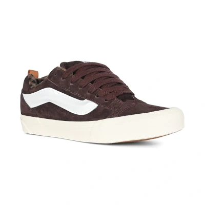 * The Vans Knu Skool is exactly that, a bulked-out version of the classic silhouette we all know and love * Brown speciality-suede uppers with white details on the side, brown and black plaid lining, all atop a white and gum sole unit * Padded tongue and collar for added comfort * Classic Vans waffle tread * Puffed out, moulded side stripe * Sizing: These run true to size, we recommend you take your usual size